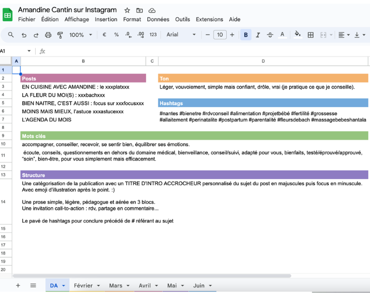 CONCEVOIR UNE STRATEGIE DE COMMUNICation instagram & un calendrier de publication pour amandine cantin (2023)